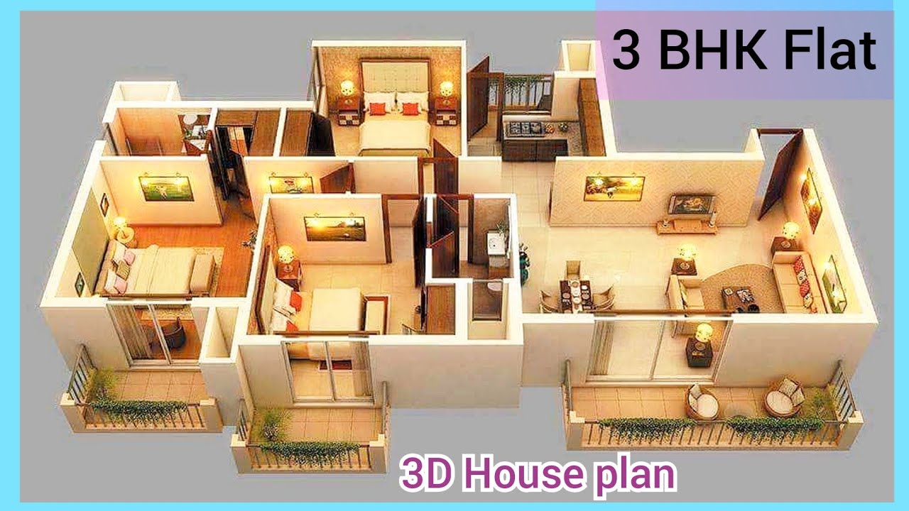 the typical size for a 3 BHK flat ranges from 1,200 to 1,800 square feet