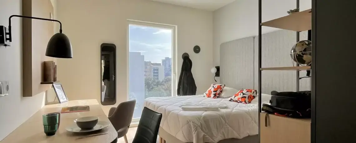 A studio apartment is a single-room dwelling that combines the bedroom, kitchen, and living area into one open space, typically without walls separating the sleeping and living areas.