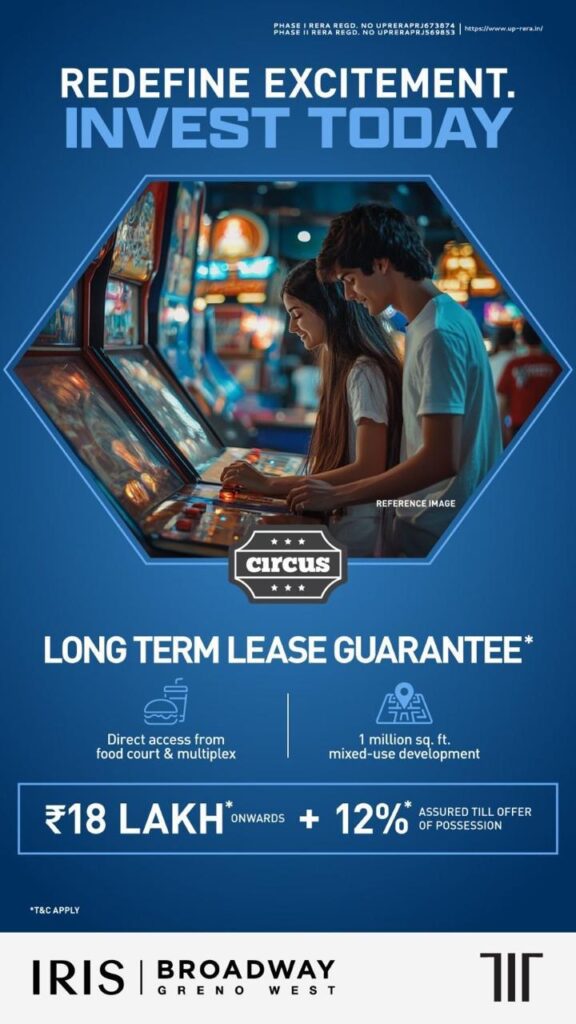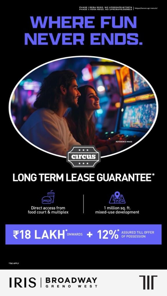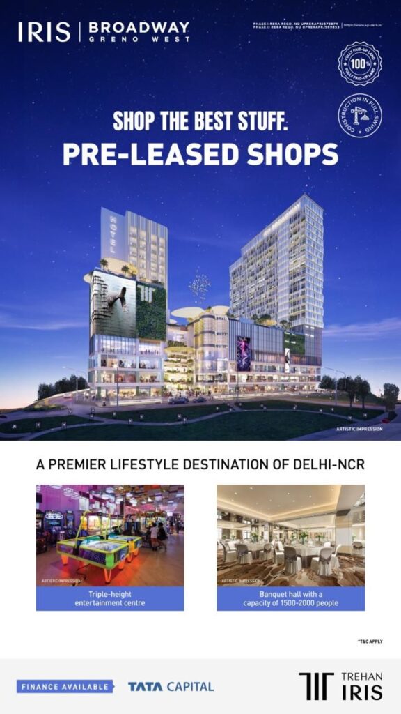 It is not just one landmark, but many. IRIS Broadway Greno West is a premium retail-led mixed-use development and entertainment destination. It is a fully air-conditioned mall and an expansive 1 million sq. ft. green building with energy-saving features. It is envisioned with a 25,000 sq. ft. atrium that will have natural plantations and shading structures.